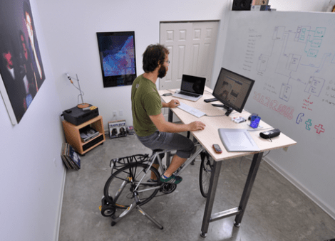 Kickstand FurnitureIf you love biking so much that the idea of getting off your bike to do work makes your stomach curl just a little bit, here is your solution. It’s called a Kickstand desk, and it lets you hook your bike up to your work surface …