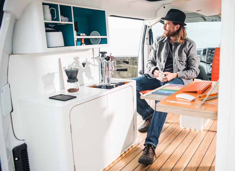 The ability to work from anywhere has allowed wanderlust-hungry individuals the chance to live as digital nomads. If you’re one of them, its seems like the entire world is your office, with the flexibility to spend a few days or weeks in one locale before moving onto another adventure. Nissan has created their own version of a movable office with the e-NV200 WORKSPACe, the world’s first electric-powered van that has everything you’d need to conduct business on the road.In collaboration with UK-based design workshop Studio Hardie, the zero-emission e-NV200 features the comforts that you’d see in a conventional office. It has an integrated fold-out desk, touch-screen computer, wireless internet, Bluetooth audio, smartphone-controlled lights, and a mini-fridge.To conserve space, many elements of the interior design are concealed and only revealed when you need to use them. The barista-quality coffee maker, for instance, rises from a hidden compartment and onto the counter; a folding…
